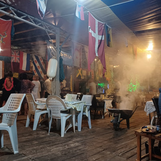 The way you get a lift to take you to dinner (saves phaffing about with the dinghy and outboard) is to whistle Jan, which I can't, so I used a fog horn instead, which worked surprisingly well. The restaurant hasn't changed, it's a picture of rustic simplicity, it looks like it's about to fall in the sea, but has always looked that way, the menu is a white board and Jan keeps the insects away with a wheelbarrow of smoking stuff (goodness knows what, smells herby). A couple of piccies will hopefully show you why we love Karacaoren.